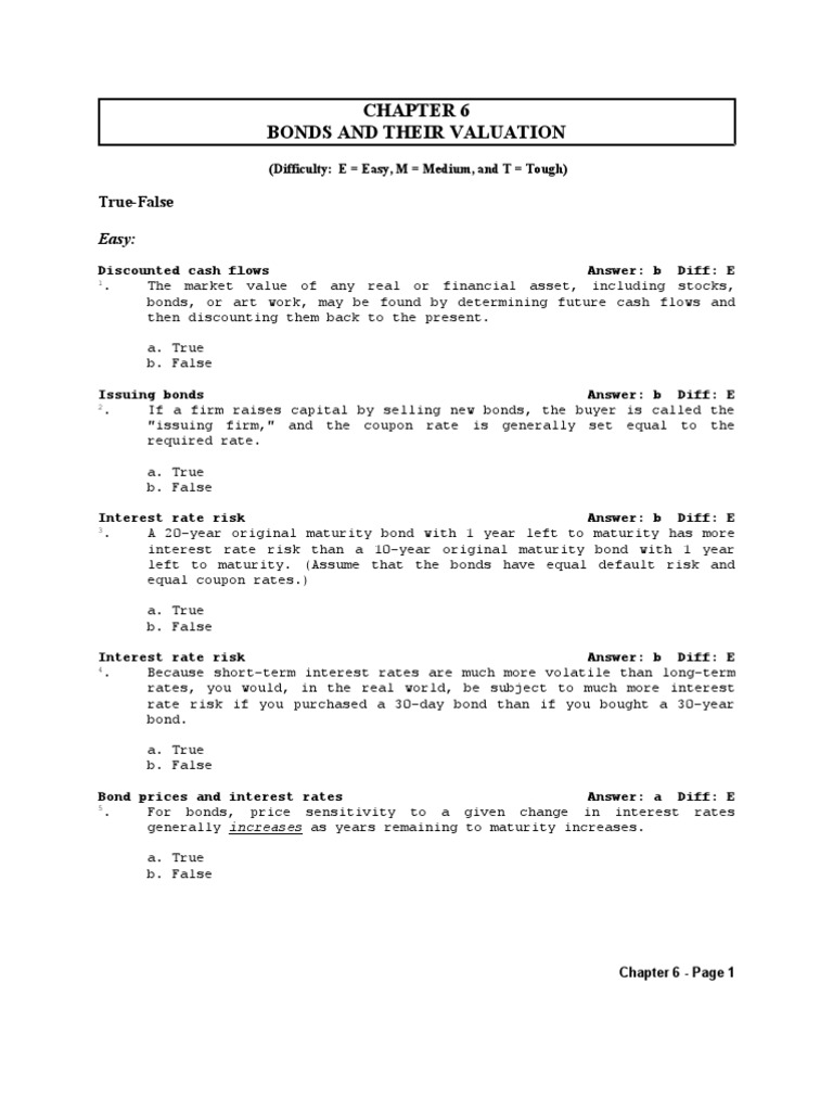 Chapter 6 Bonds And Their Valuation True False Easy Raisa Lenor