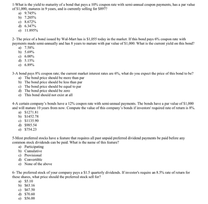 Solved What Is The Yield To Maturity Of A Bond That Pays