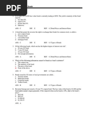 Finance First Part Quiz Chapter Four Yield Curve Bonds Finance