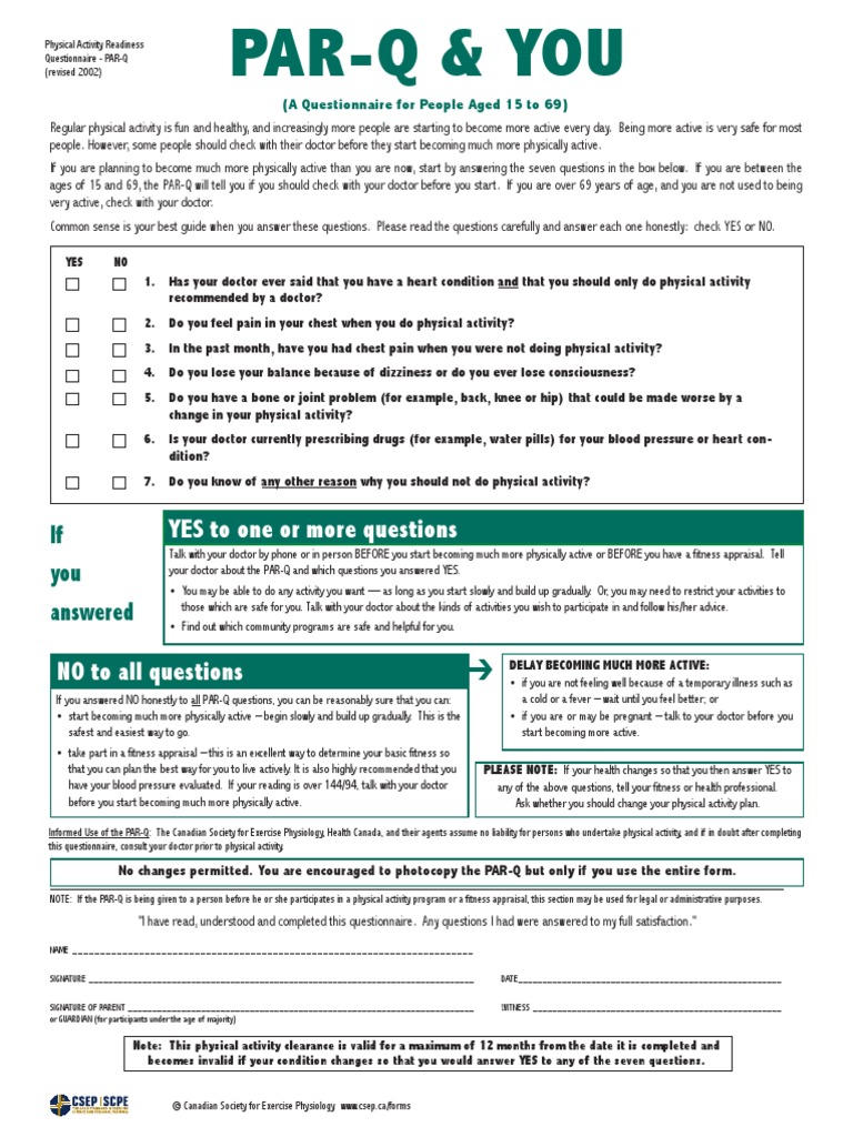 Health Canada Par Q Form