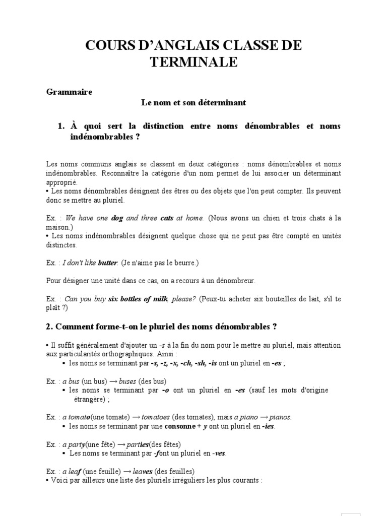 Pluriel En Anglais Pdf Cours Sur Le Pluriel En Anglais Comment
