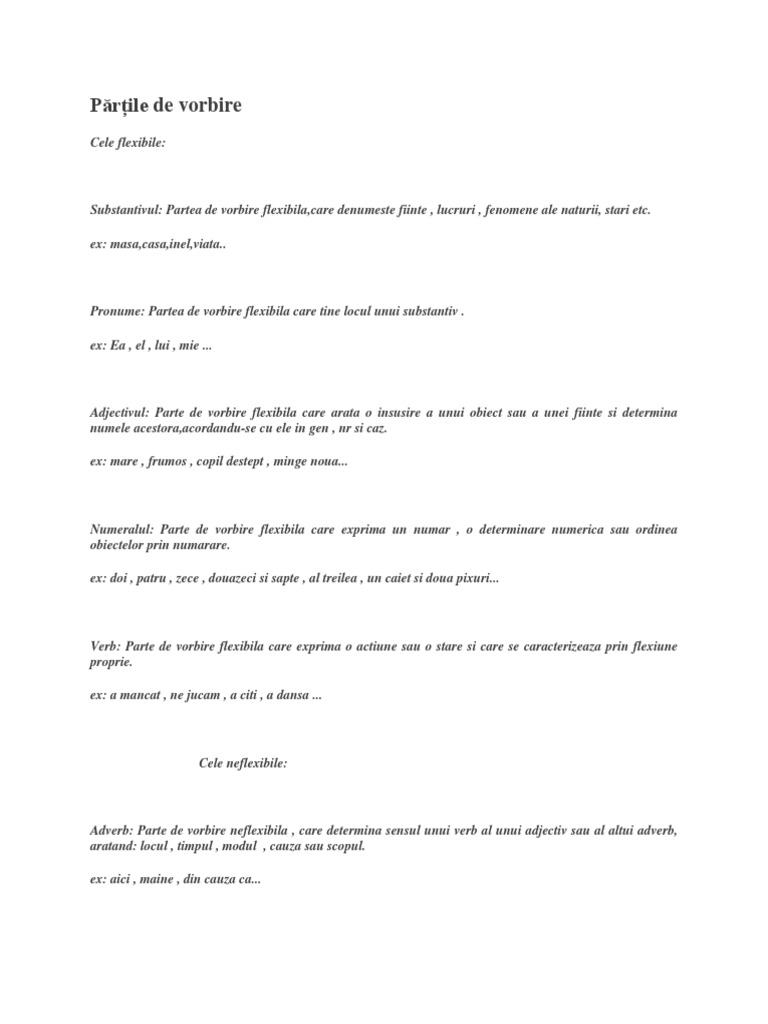 Părți De Vorbire Flexibile Si Neflexibile