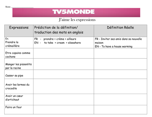 Expressions Idiomatiques Tv5 Monde Teaching Resources