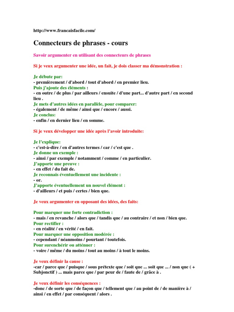 Connecteurs De Phrases Avec Corrections Fiction Et Litterature