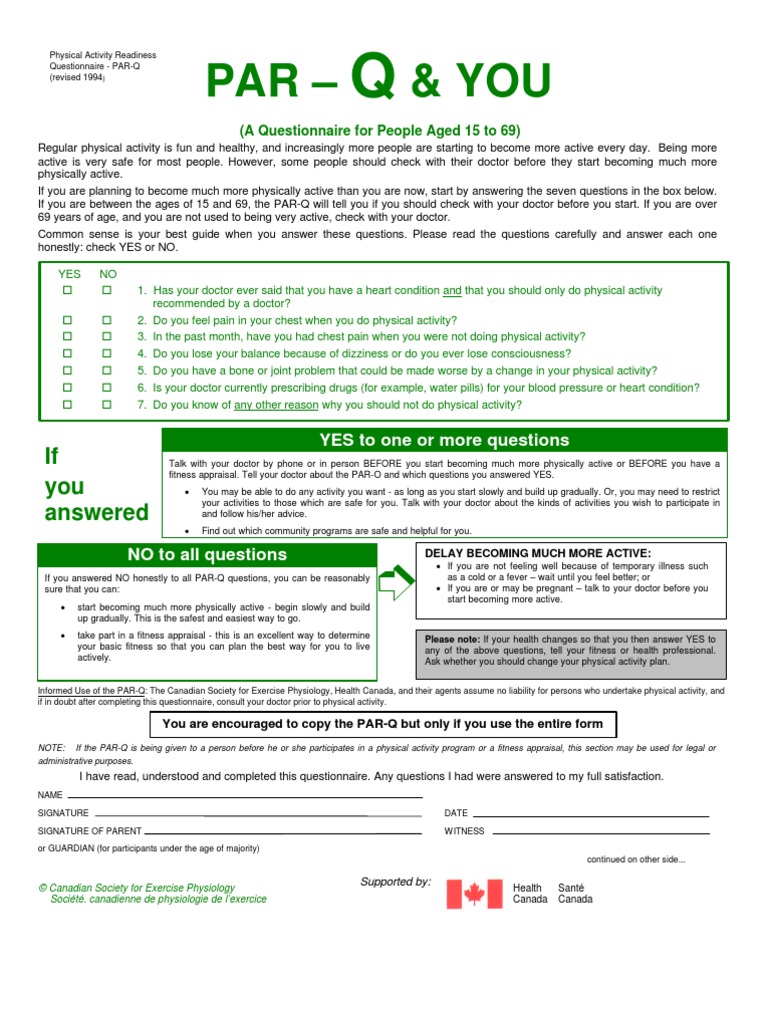 The Physical Activity Readiness Questionnaire Par Q Health
