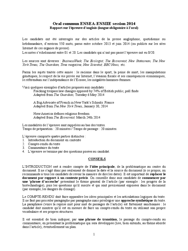 Rapport Oral Anglais 2014 Document Nombre Grammatical