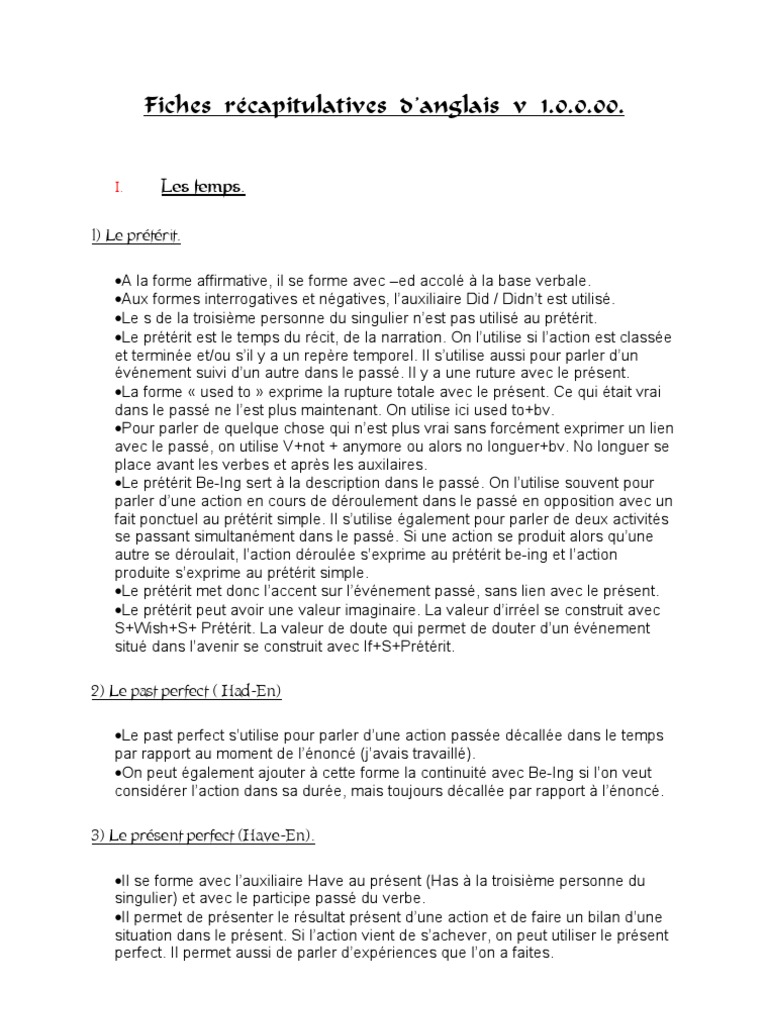 Fiches Recapitulatives D Anglais V Pdf Free Download