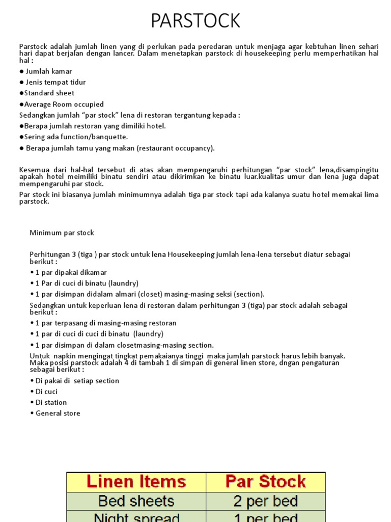 Par Stock For Restaurant