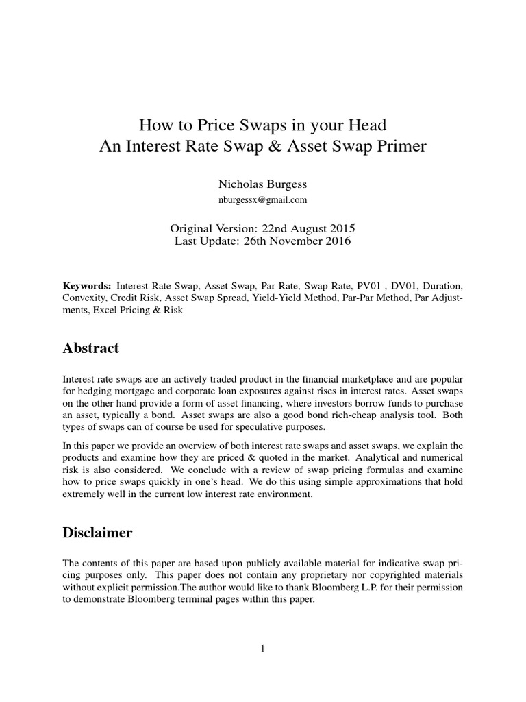 How To Price Swaps In Your Head An Interest Rate Swap Asset Swap