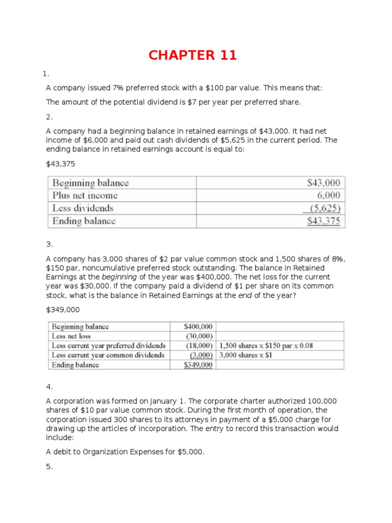 Ch 11 Exam Practice Cash Flow Statement Preferred Stock