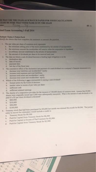 Solved Question 15 1 Pts The Par Value Per Share Of Commo