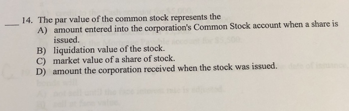 Solved 14 The Par Value Of The Common Stock Represents T