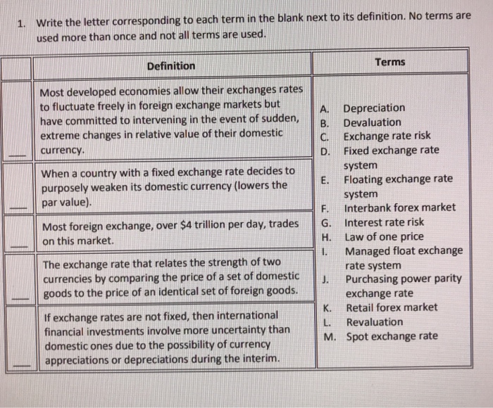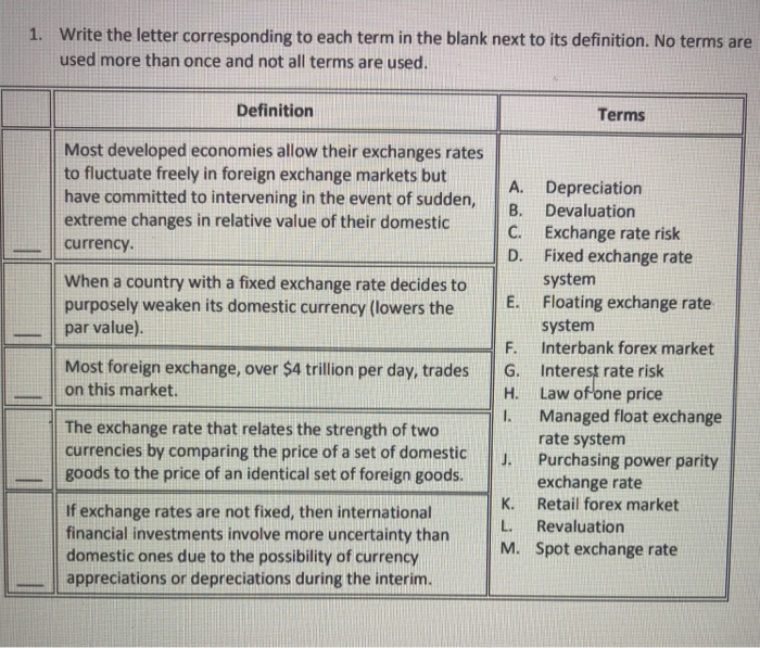 Solved 1 Write The Letter Corresponding To Each Term In Chegg Com