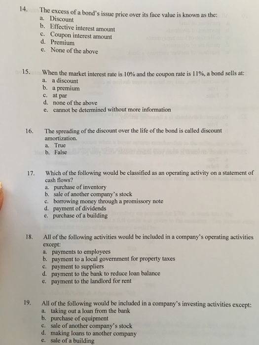Solved The Excess Of A Bond S Issue Price Over Its Face V