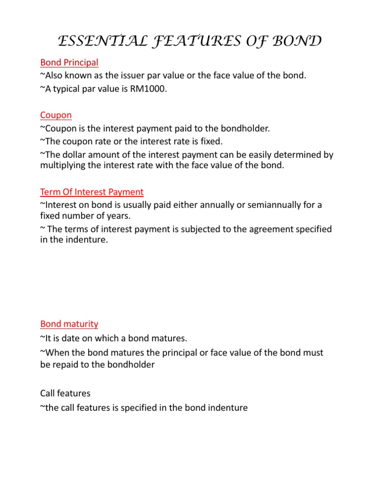 Essential Features Of Bond Bonds Finance Interest Bearing