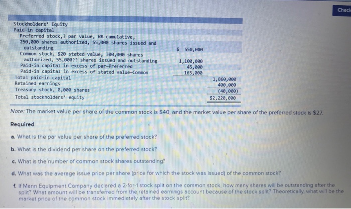 Solved A What Is Par Value Per Share Of The Preferred St