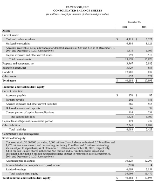Solved Facebook Inc Consolidated Balance Sheets In Mil