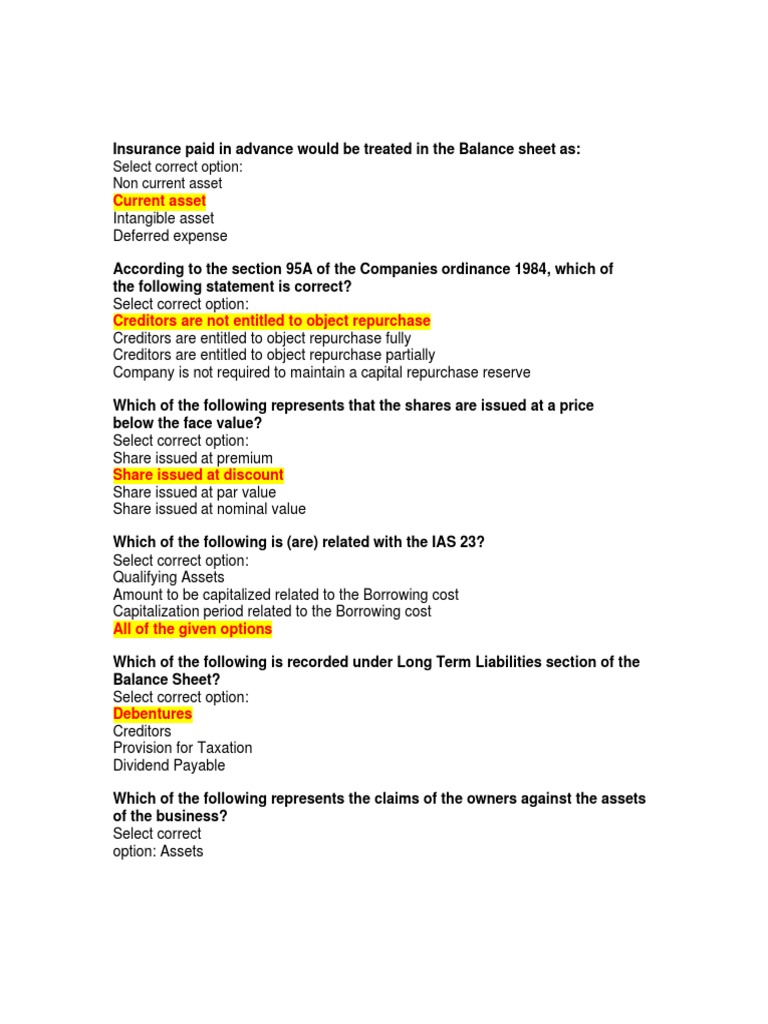 Comprehensive Examination Corporation Accounting Treasury Stock