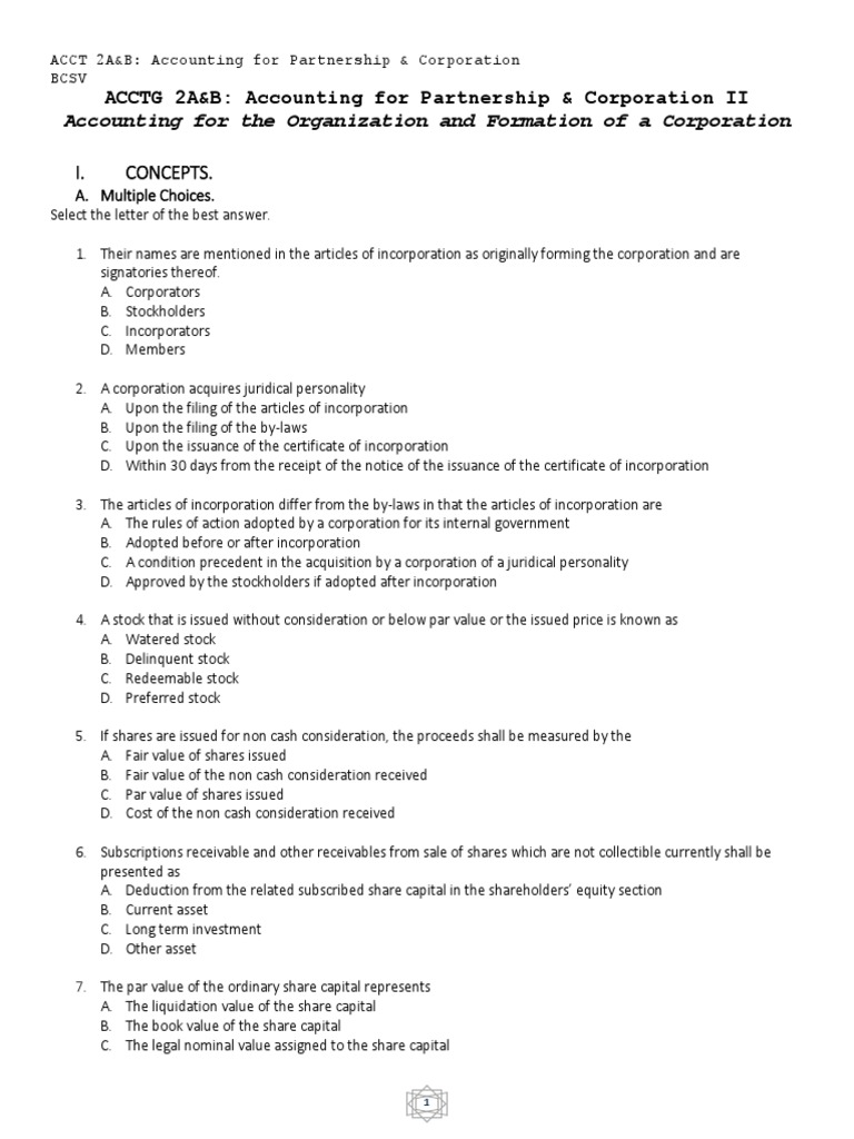 Bcsv5 2 Organization And Formation Capital Surplus Stocks
