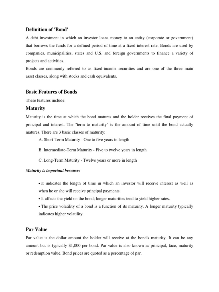 Definition Of A Bond N A Bond Is A Security That Obligates The