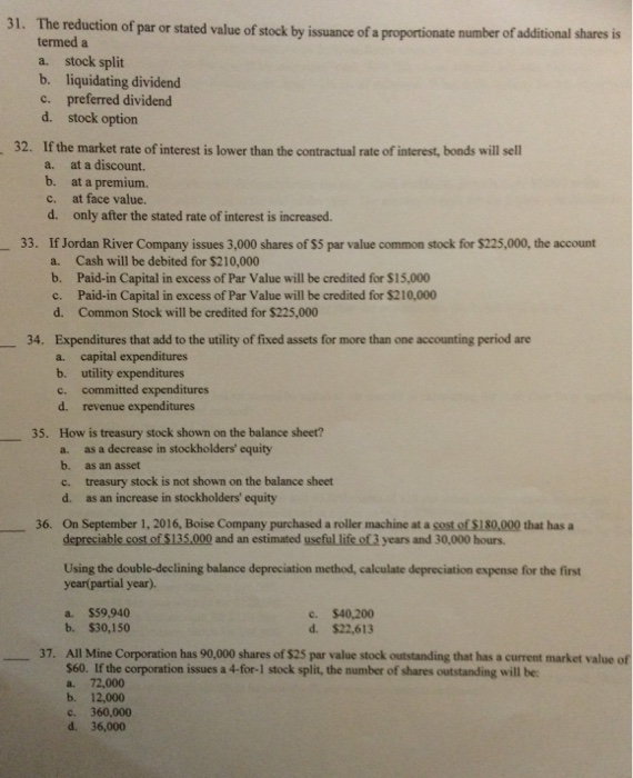 Solved The Reduction Of Par Or Stated Value Of Stock By I