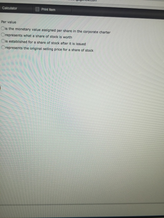 Solved Par Value Is The Monetary Value Assigned Per Share