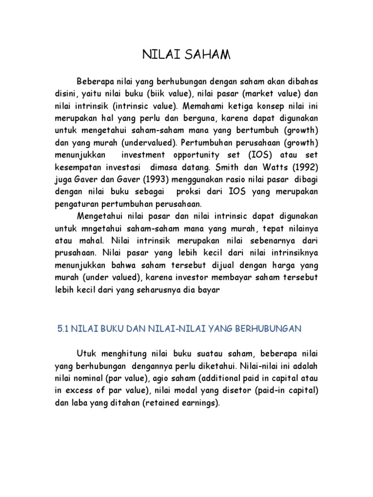 Par Value Saham Adalah