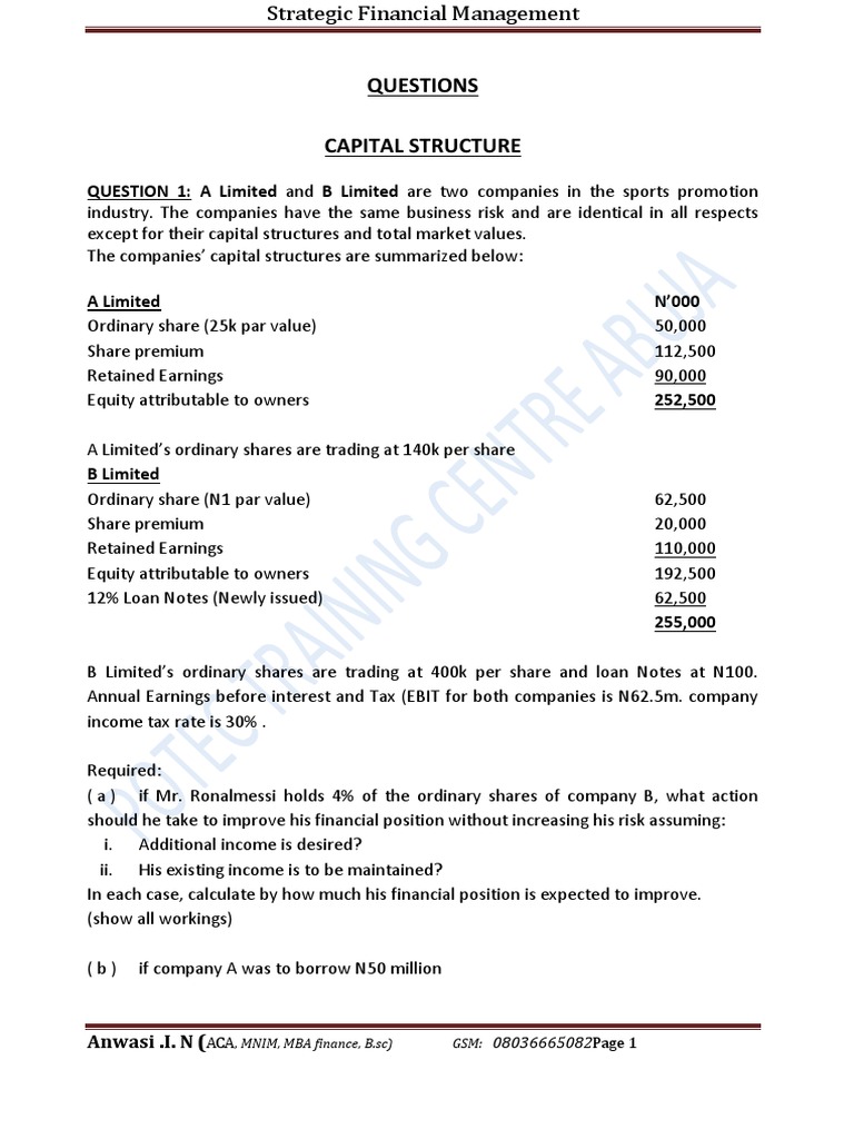 Sfm Question Bank 2019 Cost Of Capital Dividend