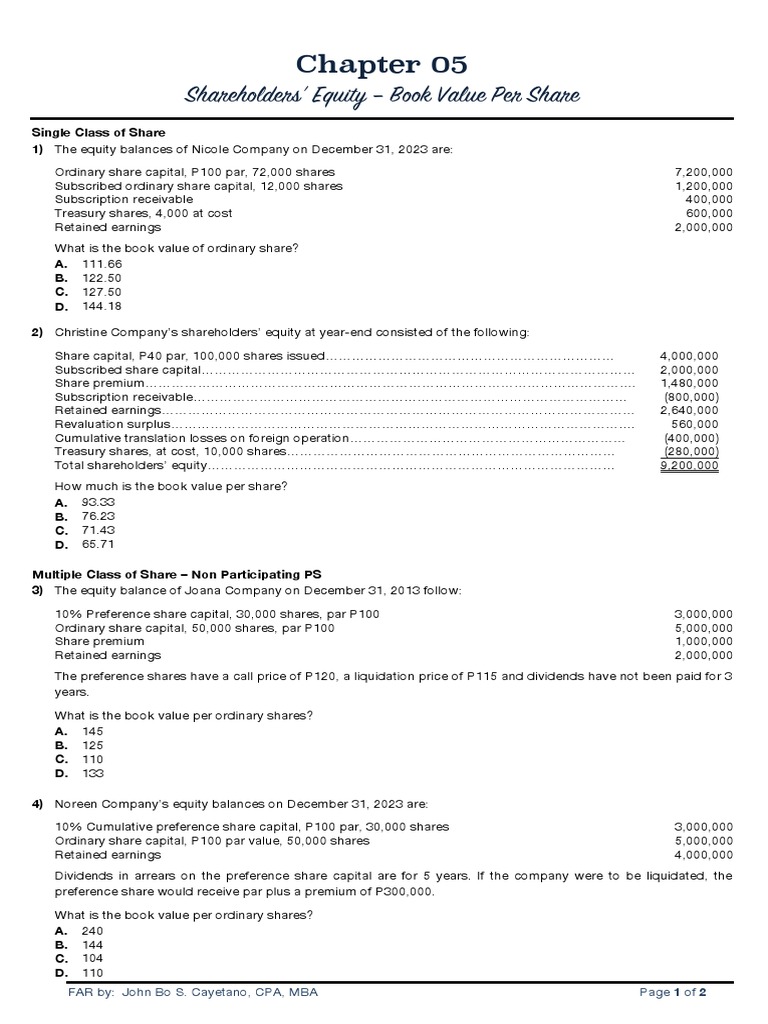 Far 05 Book Value Per Share Preferred Stock Treasury Stock