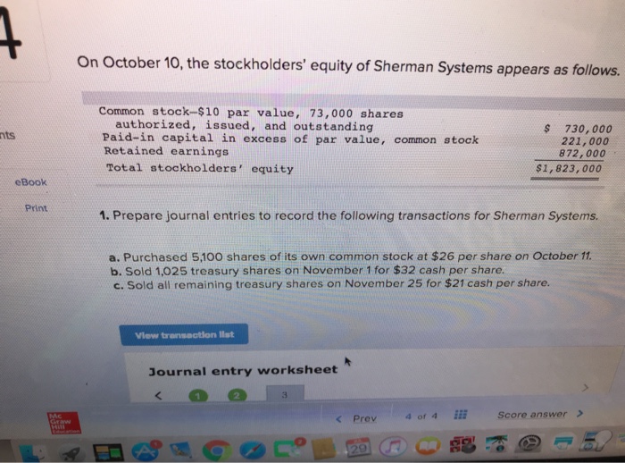 Solved On October 10 The Stockholders Equity Of Sherman