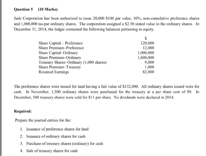 Solved Question 5 10 Marks Jude Corporation Has Been Au