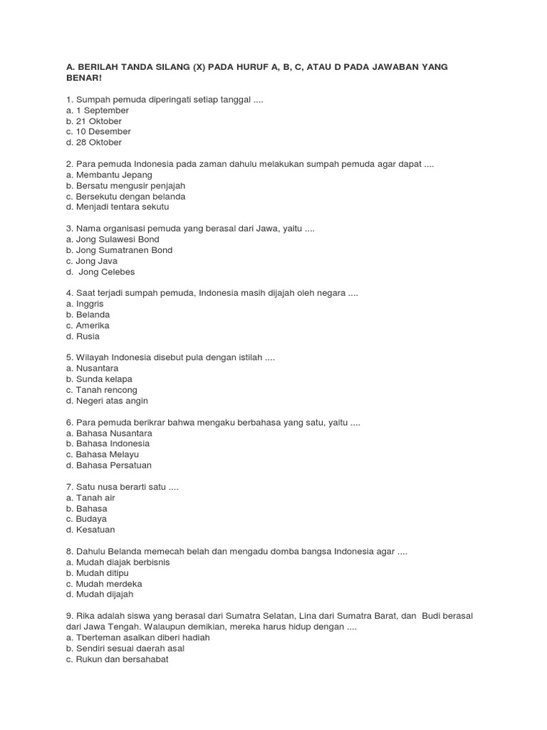 Soal Pkn Kelas 3 Sd Bab 1 Sumpah Pemuda Dan Kunci Jawaban