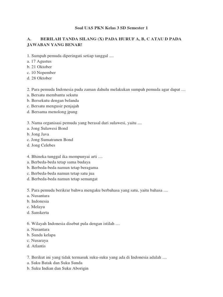Soal Uas Pkn Kelas 3 Semester 1 Dan Kunci Jawaban Teori Xxx