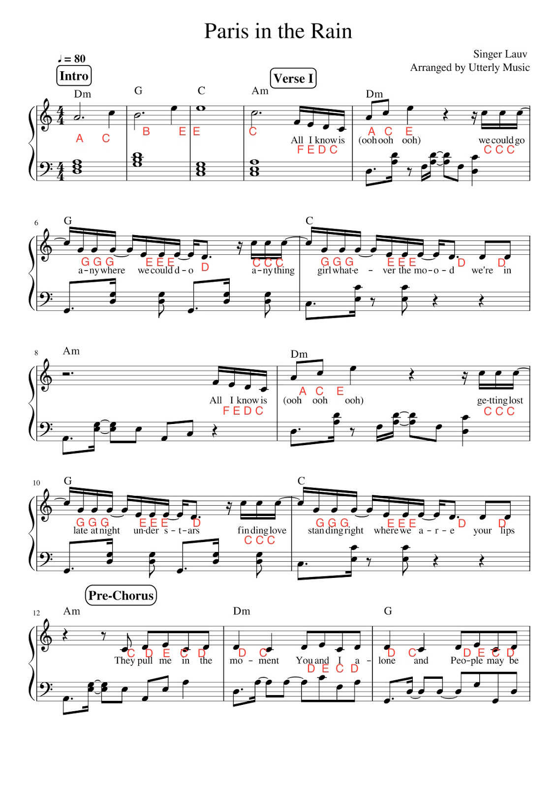 Utterly Music Piano Scores Paris In The Rain By Lauv