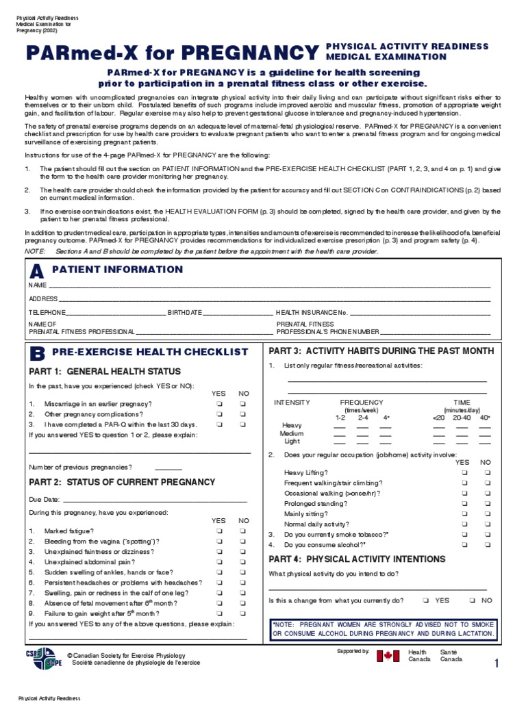 Parmed X For Pregnancy Canadian Society For Exercise