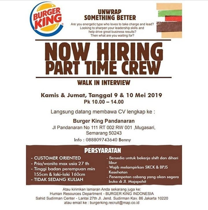 Walk In Interview Burger King Mei 2019 Crew Semarang Jatengloker