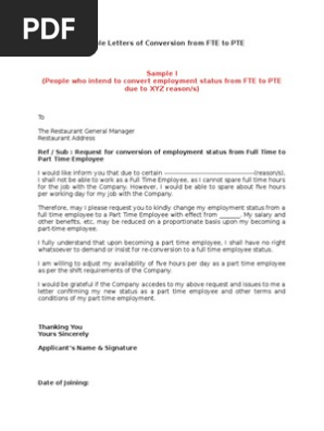 Template For Conversion From Fte To Pte Part Time Contract