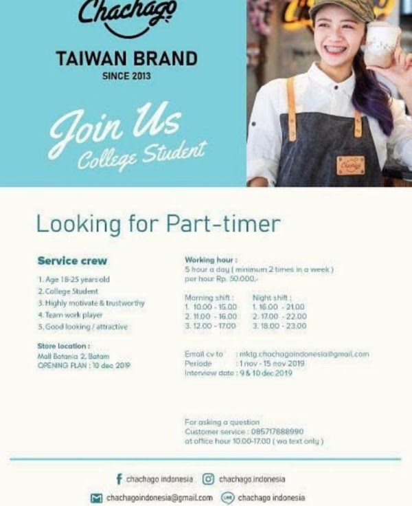 Lowongan Kerja Batam Chachago Part Time 2019 Pos Kerja
