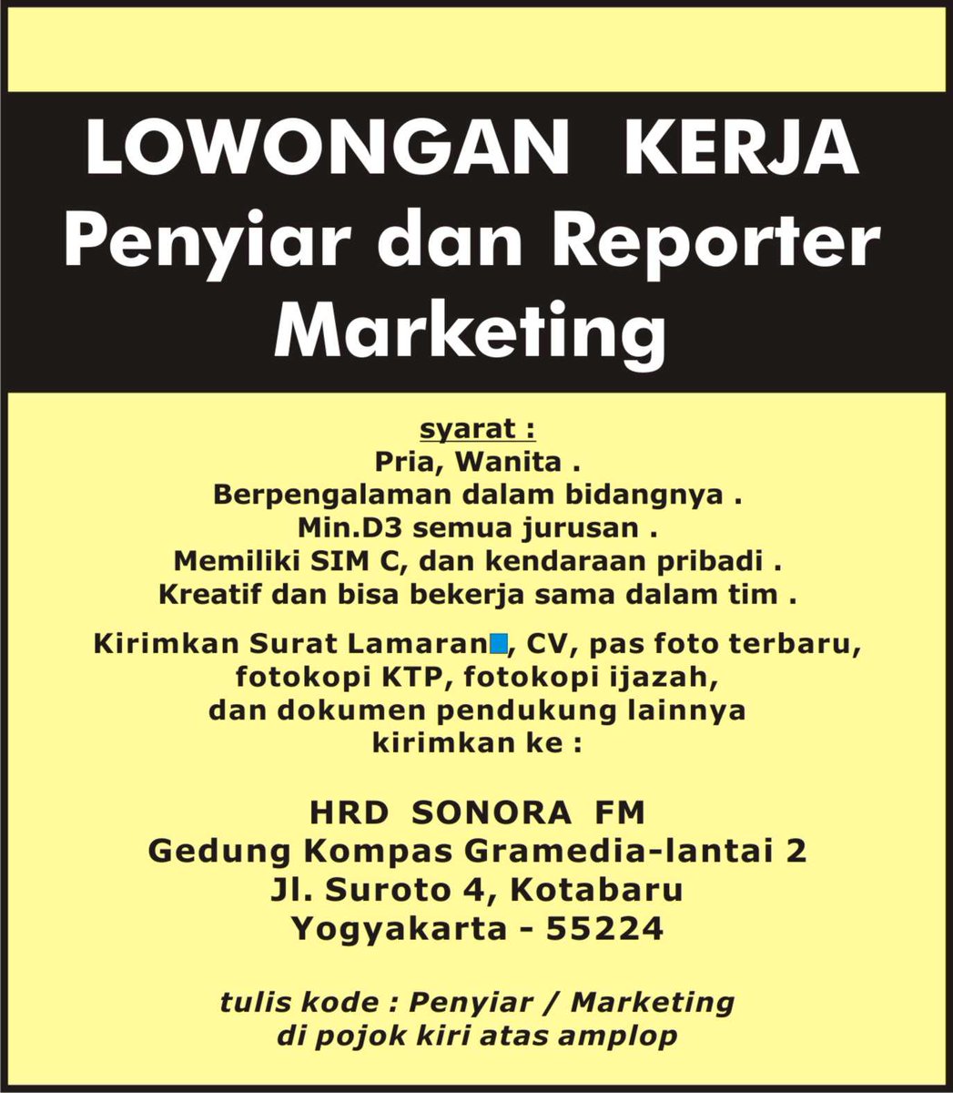 Lowongan Kerja Sales Admin Marketing Di Pt Radio Retjo Buntung Fm Lokerjogja Id