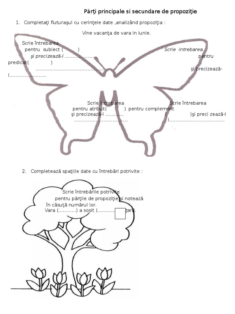 0 Parti Principale Si Secundare De Propozitie Fisa De Lucru 1