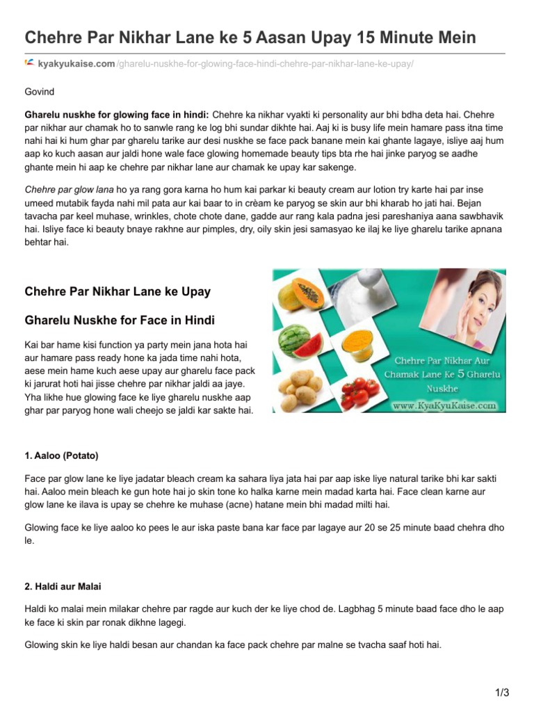 Chehre Par Nikhar Lane Ke Upay Aur Gharelu Nuskhe In Hindi