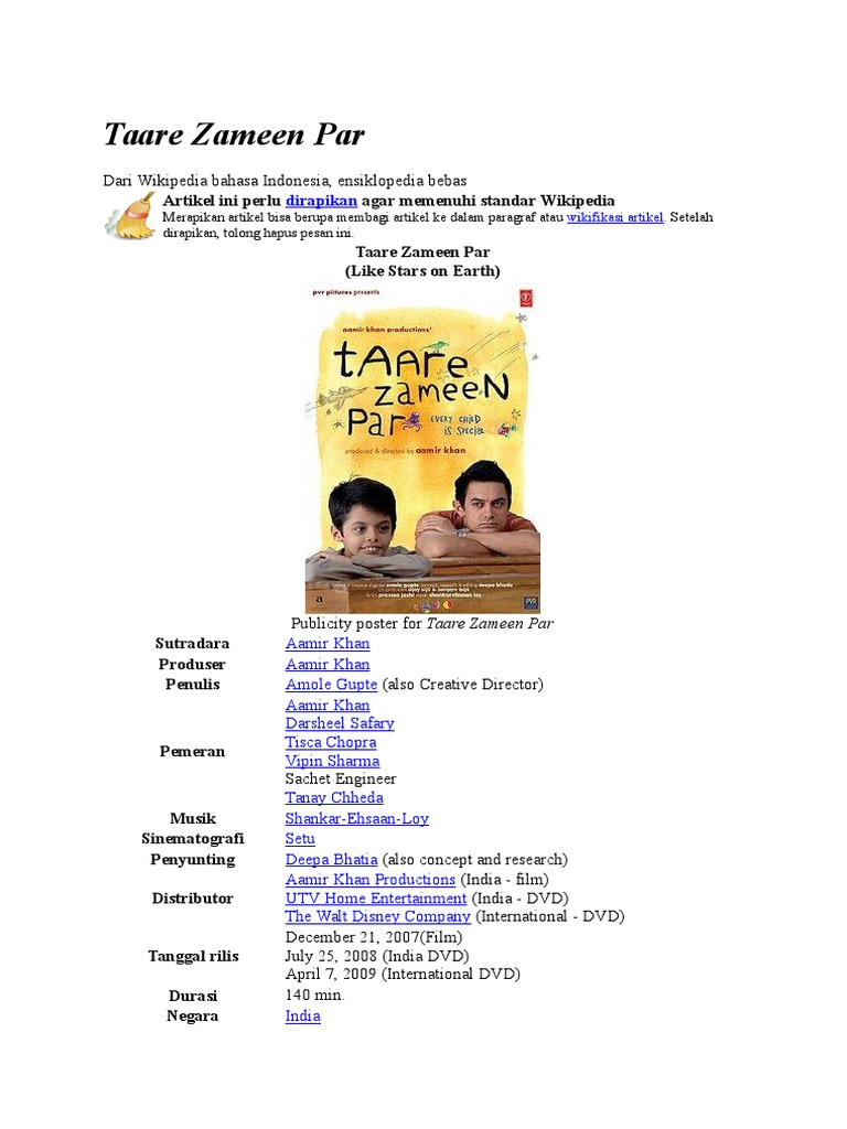 Menyimak Film Taare Zameen Par Kompasiana Com
