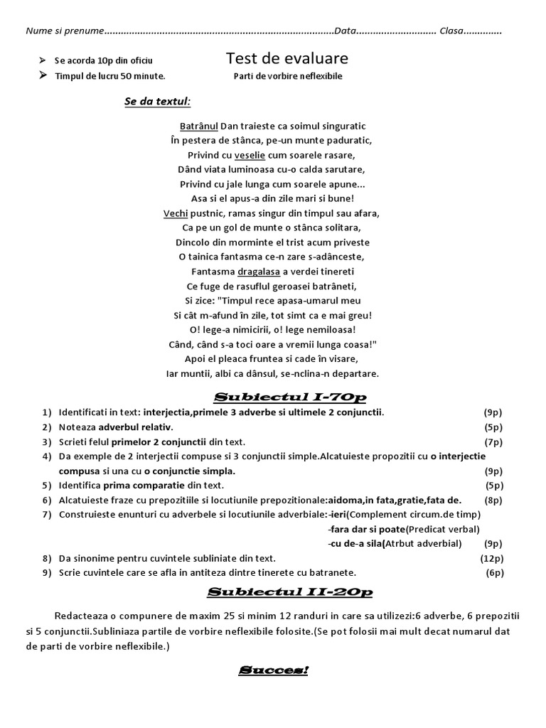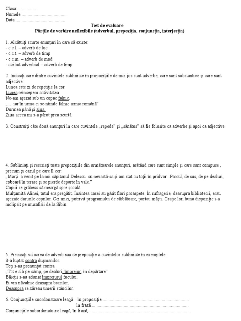 Teste De Limba Romana