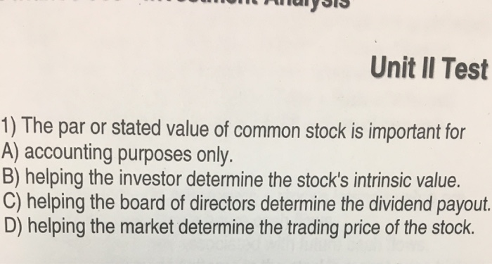 Solved Unit Ii Test 1 The Par Or Stated Value Of Common