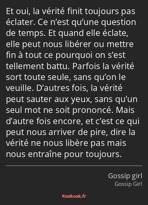 2016 rien ne sert de mentir tout se sait un jour car la vérité se dévoile tôt ou tard. Ni trop serré c est étouffant ni trop distendu parce qu on finit par perdre le lien. Tout finit par avoir une explication. On finit par en oublier de chercher.