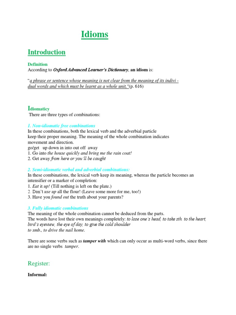 Idioms Idiom Verb Free 30 Day Trial Scribd