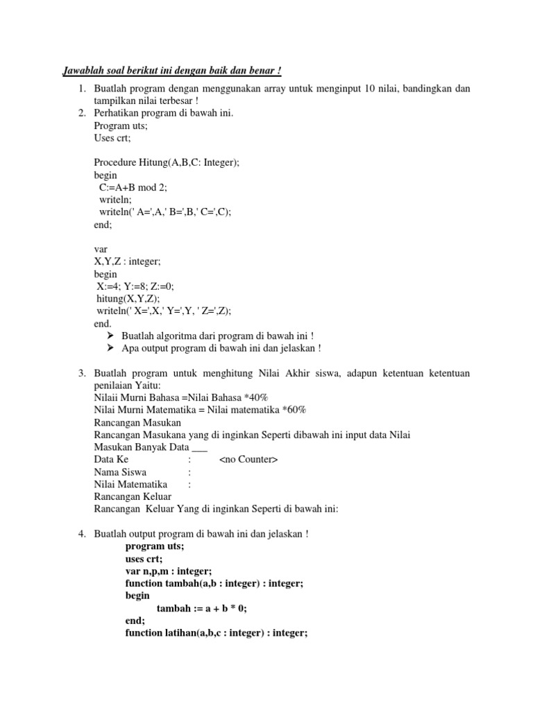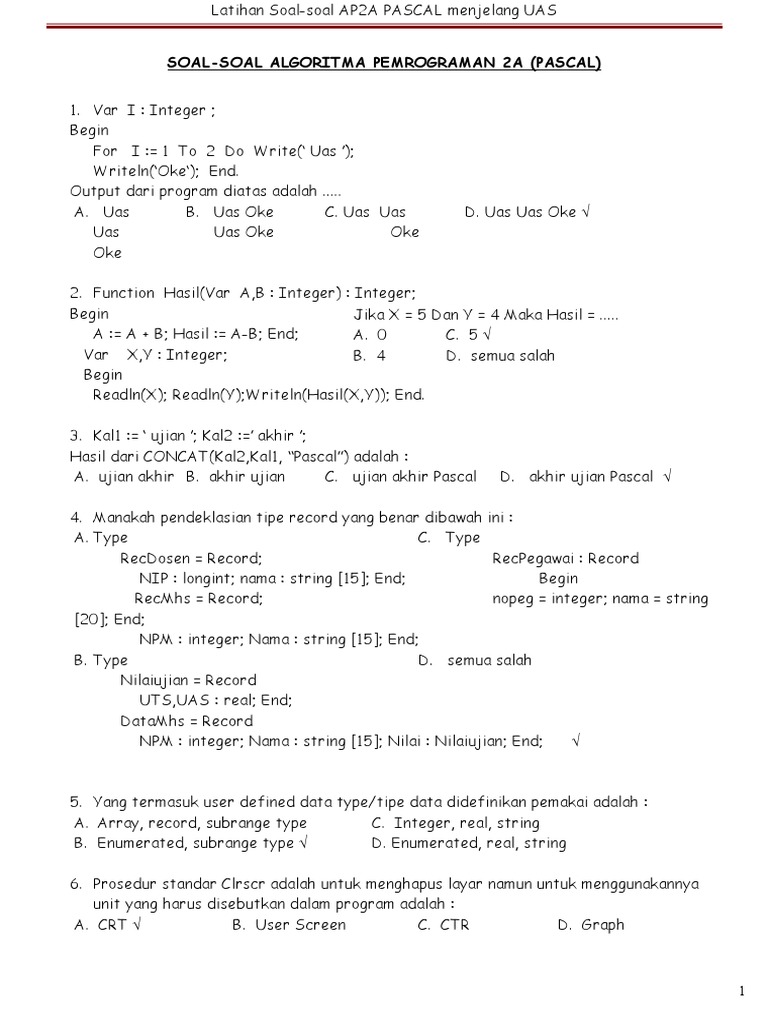 Latihan Soal Uas Ap2a Pascal