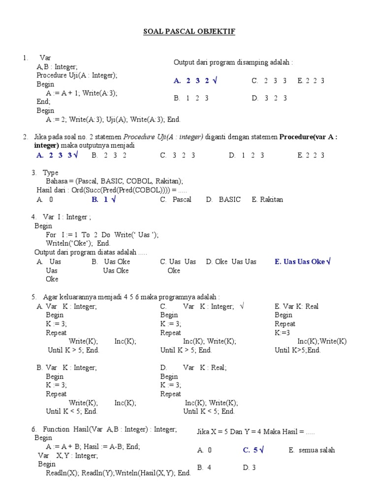 Soal Pascal Objektif