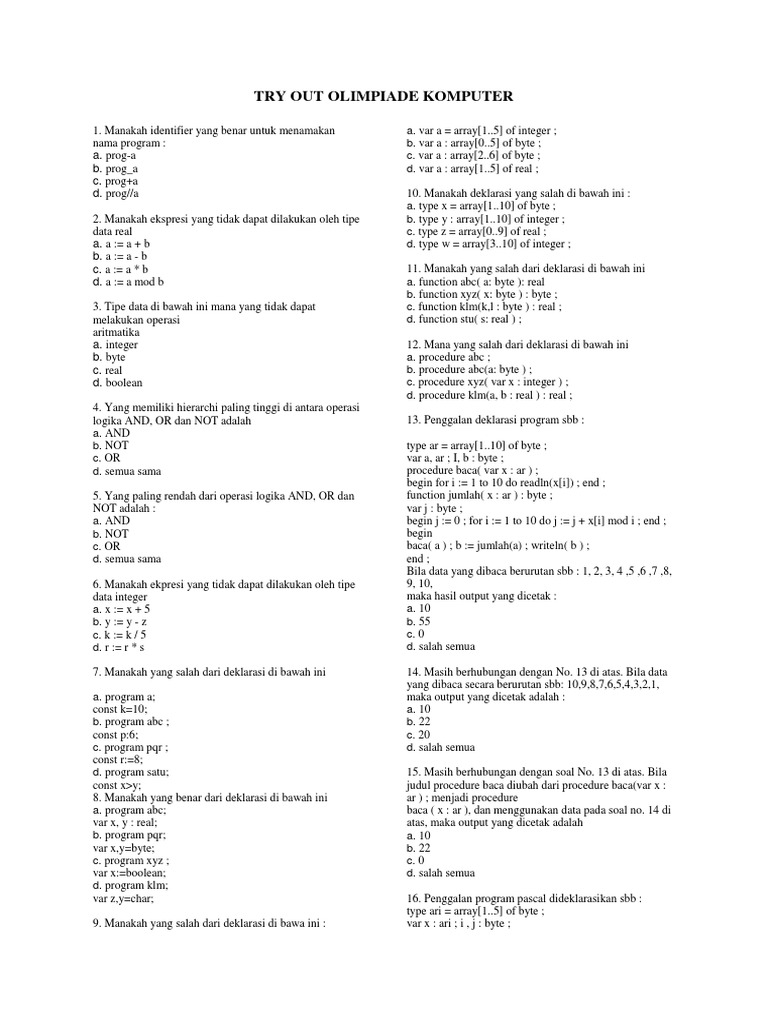 Soal Try Out Olisoal Try Out Olimpiade Komputer Docxmpiade Komputer