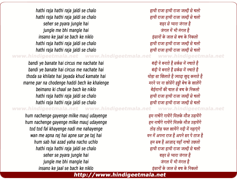 Hathi Raja Hathi Raja Lyrics Hathi Raja Hathi Raja Hindi Lyrics